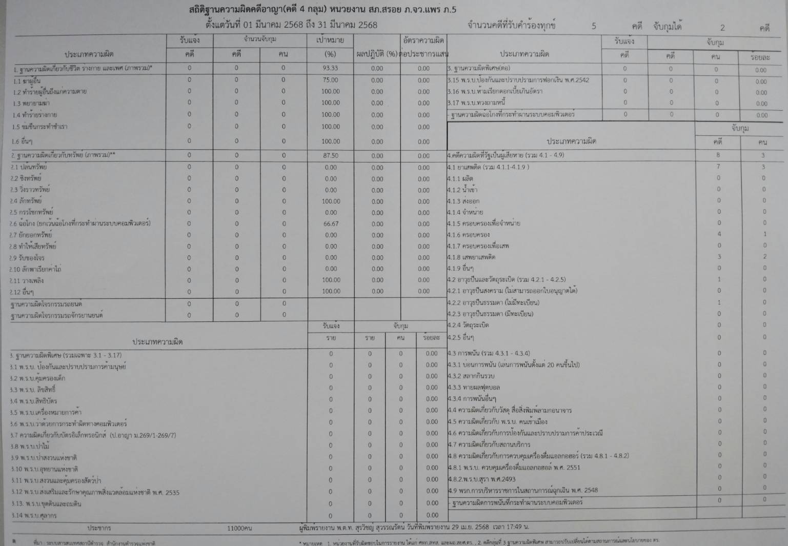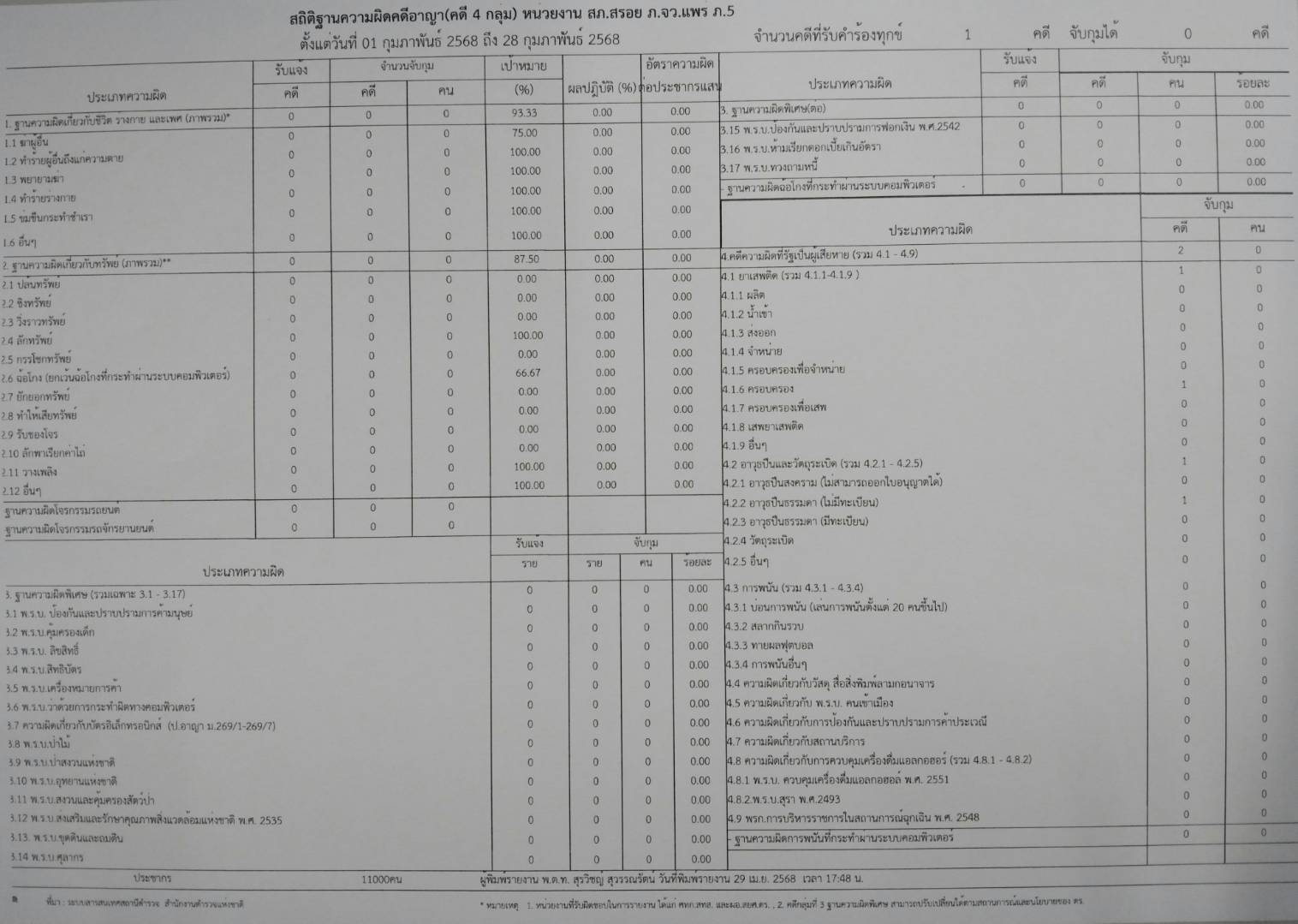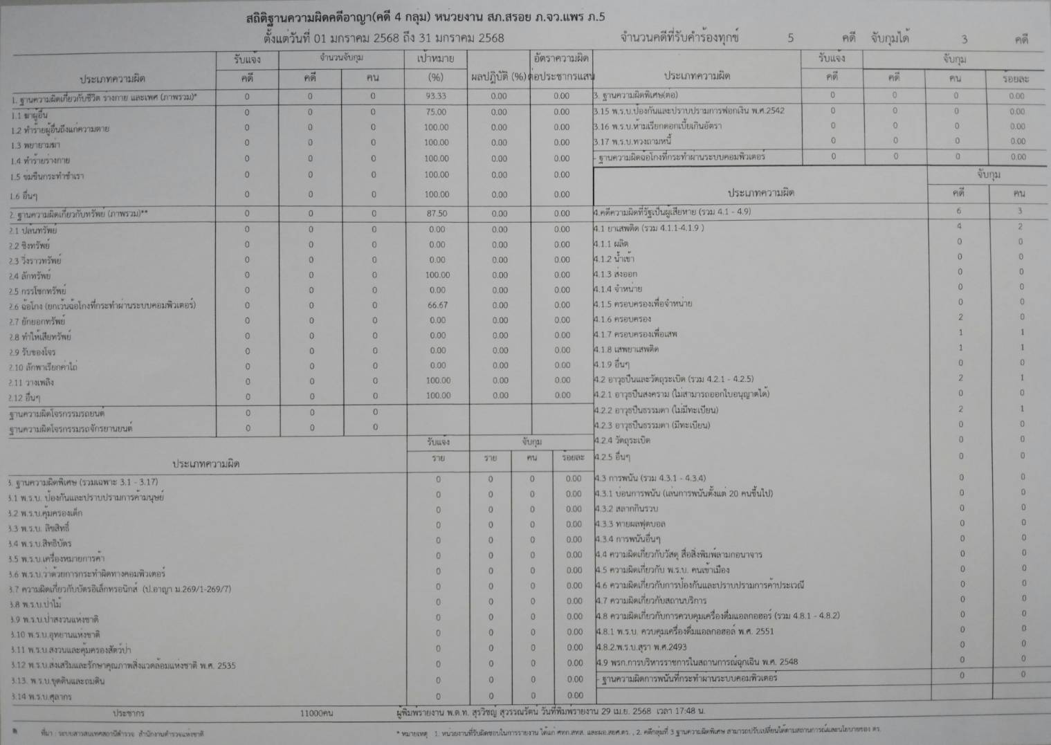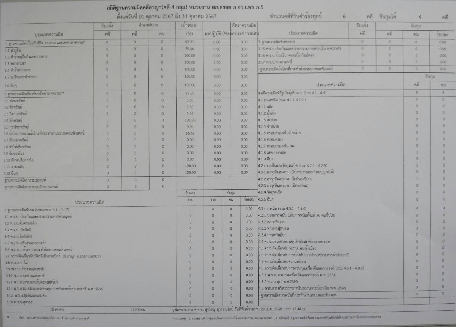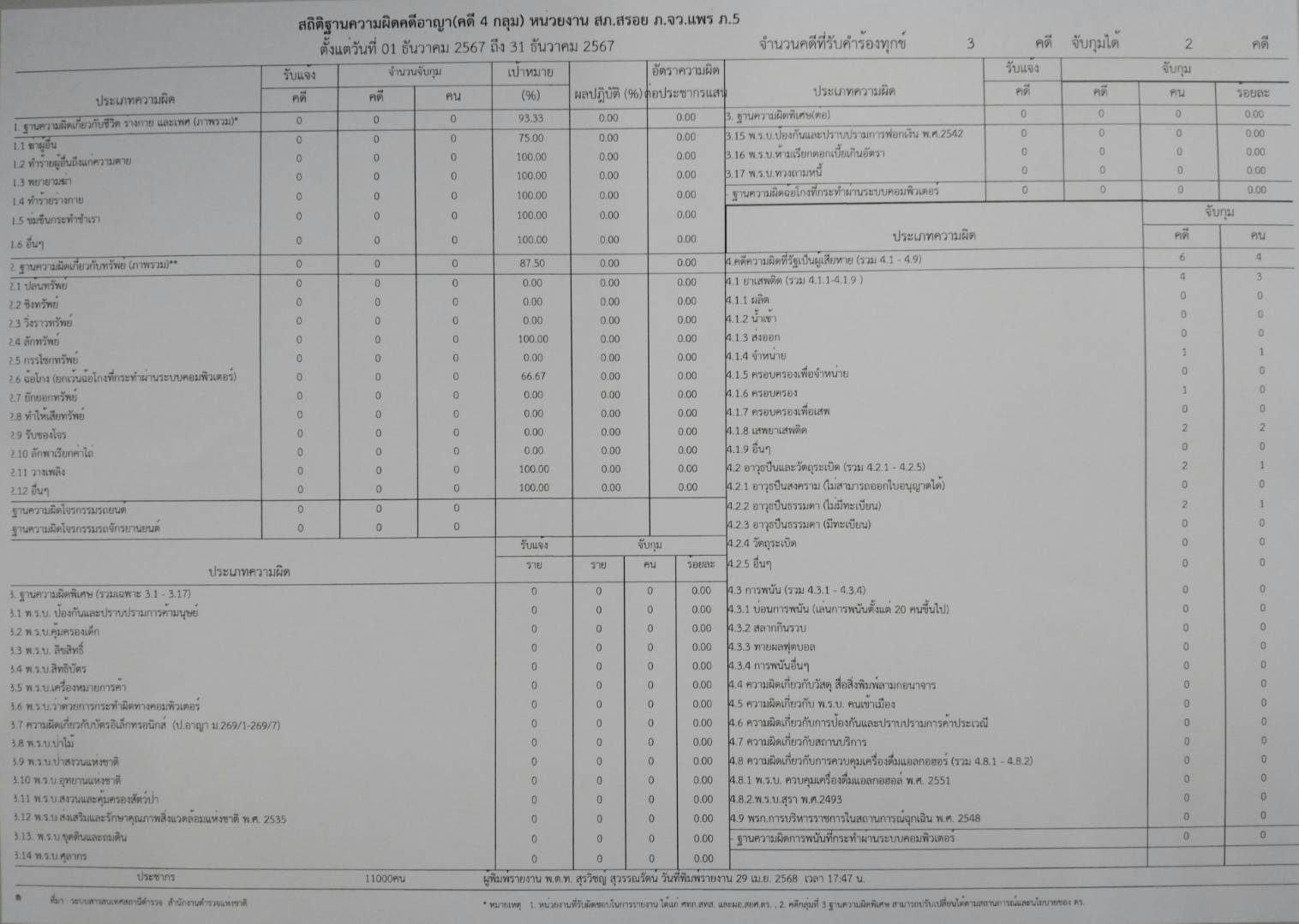 ข้อมูลผลการดำเนินงานในเชิงสถิติด้านคดีอาญา 4กลุ่มตามระบบCRIMES